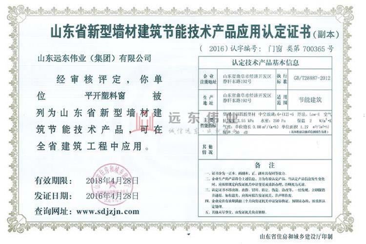 • 塑料窗節(jié)能認證證書