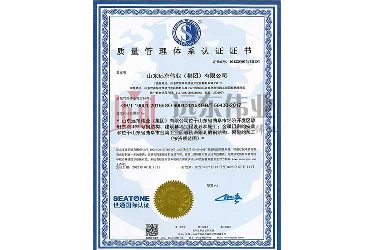 • 質(zhì)量管理體系認證證書