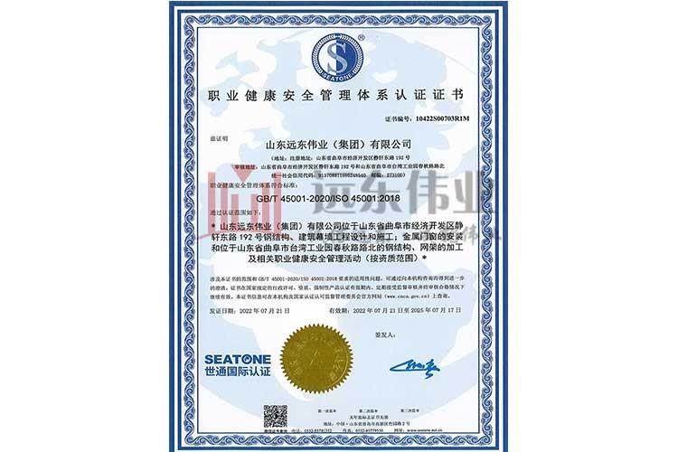 • 職業(yè)健康安全管理體系認證證書