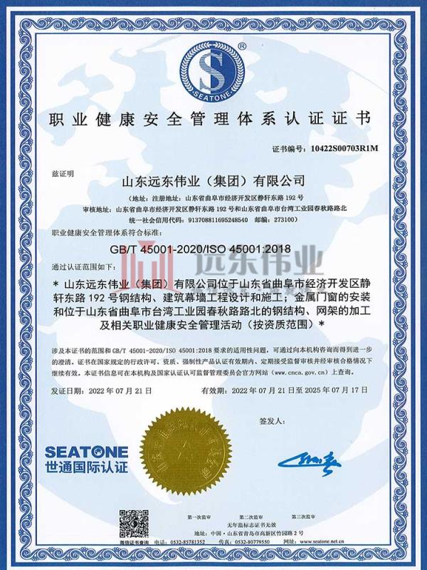 職業(yè)健康安全管理體系認(rèn)證證書